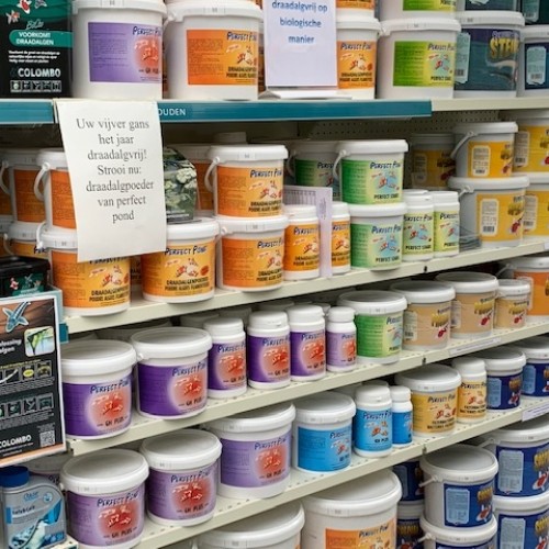 Ook voor vissen en visvoeding (Hikari, Perfect Pond, Tetra...) kan je bij ons terecht. Verder bieden wij spuitfiguren en borrelelementen aan, waterplanten en benodigdheden, Firestone-folie, doorvoeren, darmen en koppelingen.